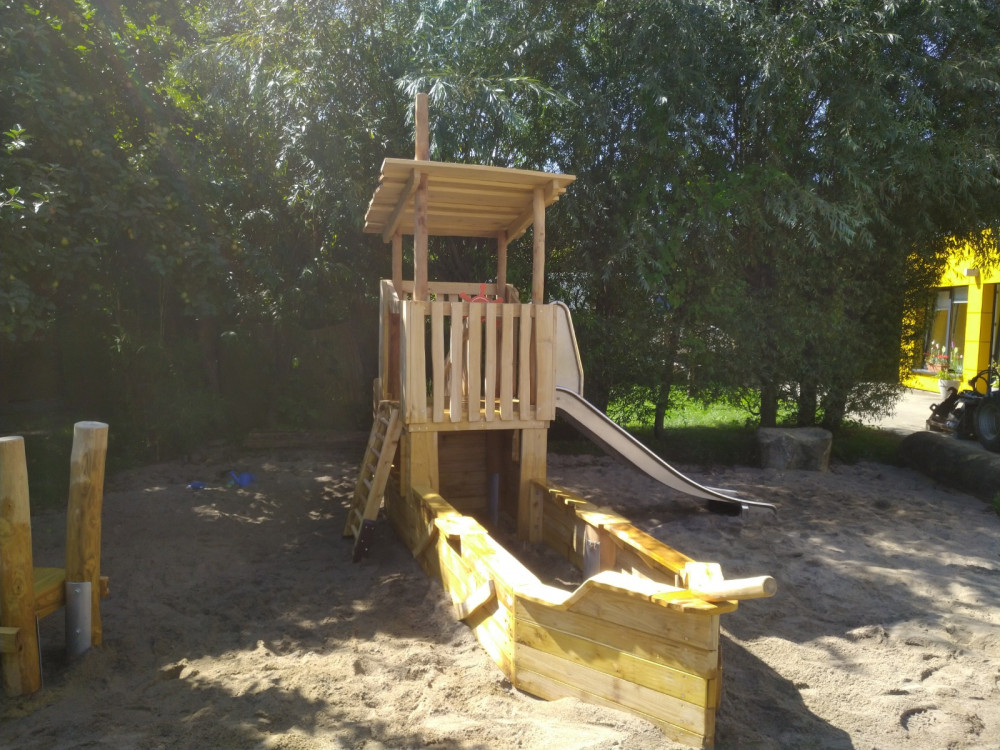 Das Mini-Piratenboot hat eine Podesthöhe von ca. 98 cm