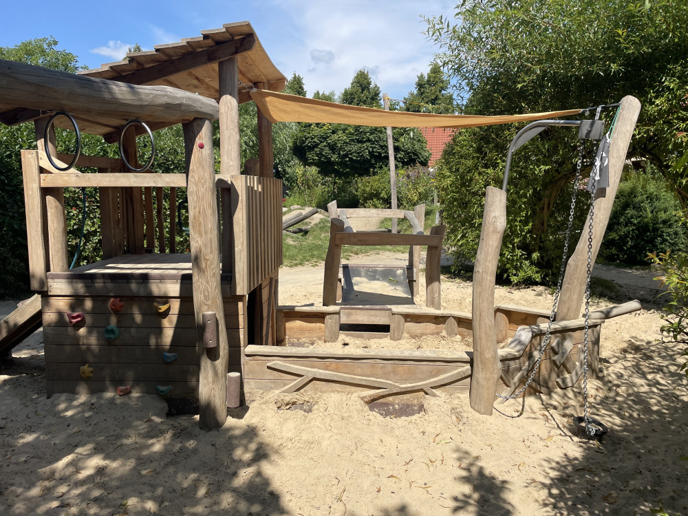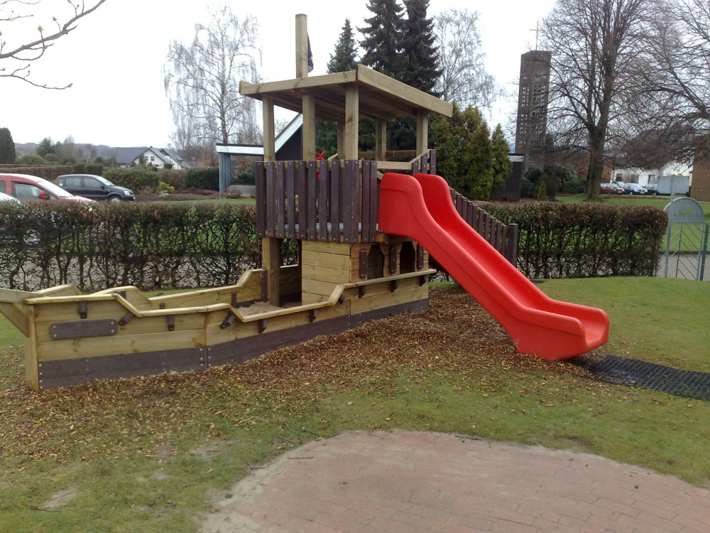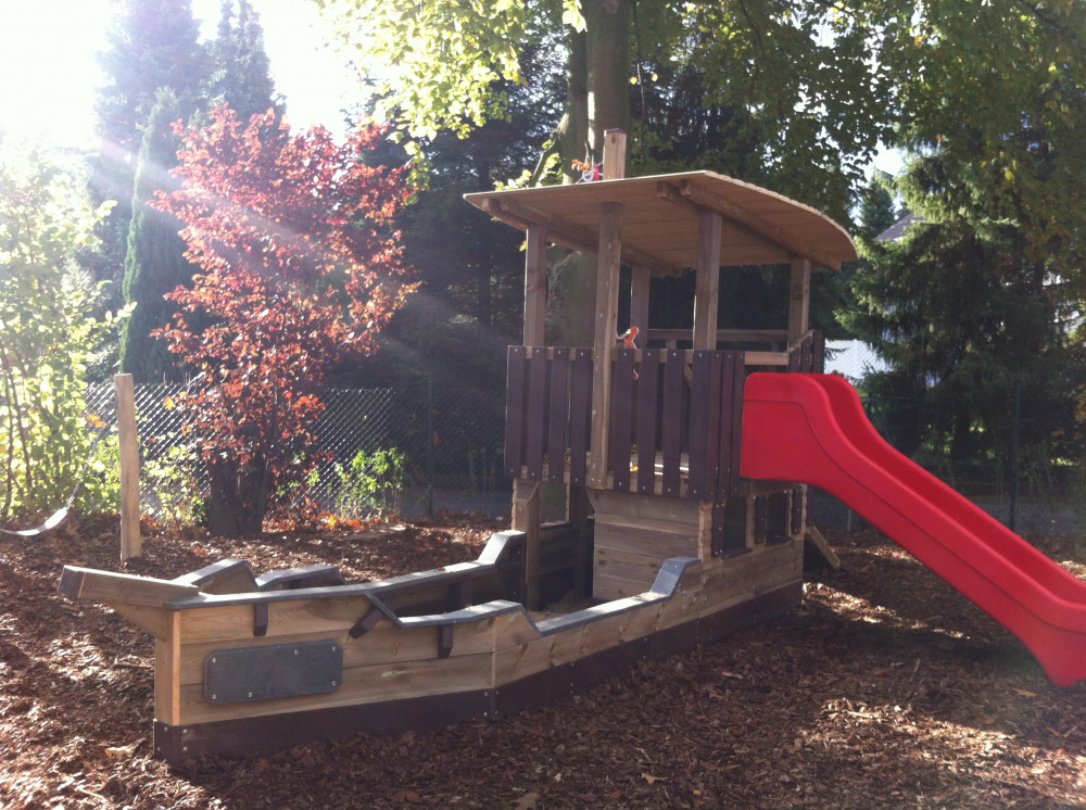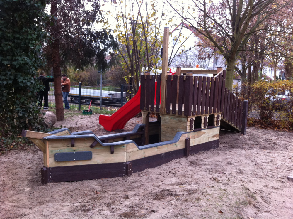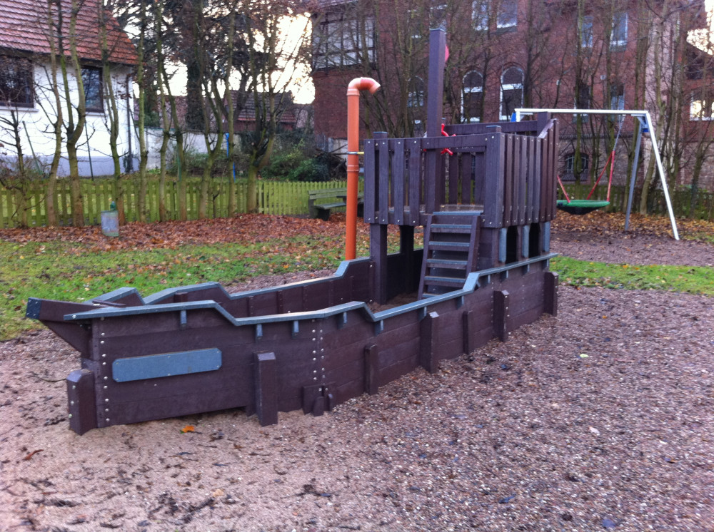 Das Spielschiff "Seemöwe" hat eine Podesthöhe von ca. 0,98 m
